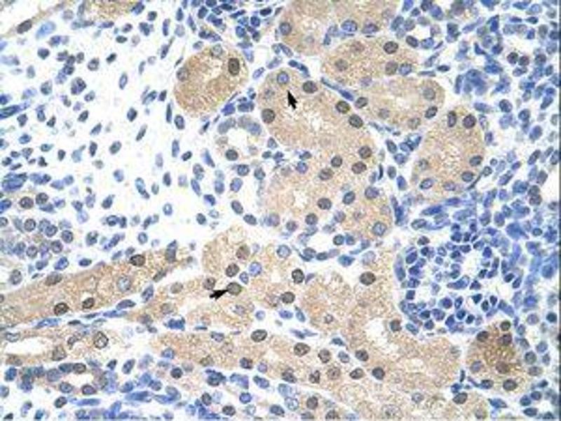 Synthetic peptide from C-Terminus of human RNASEH2A (O75792, NP_006388). Percent identity by BLAST analysis: Human, Gorilla, Gibbon, Monkey, Marmoset, Bovine, Bat, Horse, Pig, Opossum, Platypus, Stickleback, Zebrafish (100%), Galago, Mouse, Rat, Elephant, Panda, Dog, Xenopus (92%).