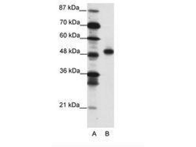 Synthetic peptide from C-Terminus of human MEOX2 (P50222, NP_005915). Percent identity by BLAST analysis: Human, Gorilla, Gibbon, Monkey, Marmoset, Elephant, Panda, Dog, Bovine, Rabbit, Horse, Pig, Guinea pig, Platypus (100%), Galago, Mouse, Bat, Opossum, Turkey, Zebra finch, Chicken, Lizard, Stickleback (92%), Rat, Hamster, Xenopus, Zebrafish (85%).