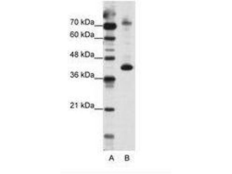 Synthetic peptide from N-Terminus of human NKRF (O15226, NP_060014). Percent identity by BLAST analysis: Human, Chimpanzee, Gorilla, Gibbon, Monkey, Galago, Dog, Horse (100%), Elephant, Bovine, Bat, Rabbit, Guinea pig (92%), Marmoset, Mouse, Rat (85%), Hamster (84%).