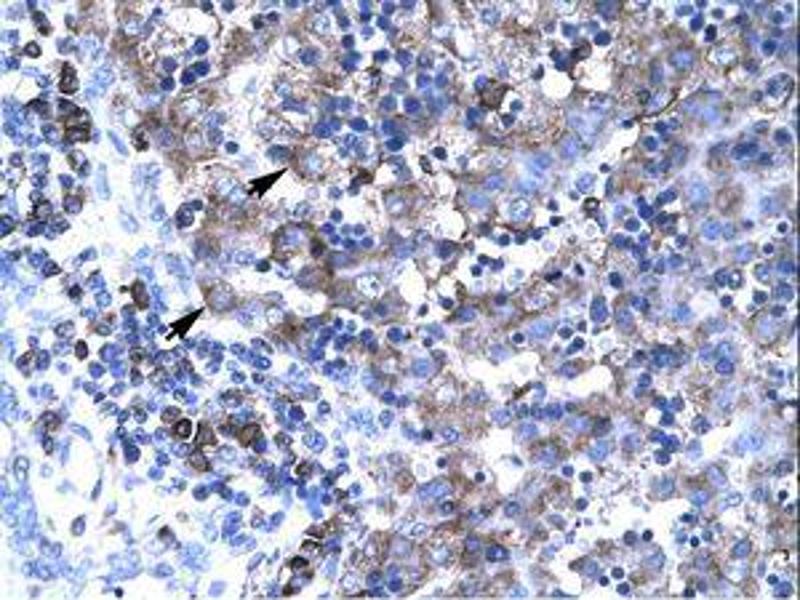 Synthetic peptide from N-Terminus of human TBX19 (O60806, NP_005140). Percent identity by BLAST analysis: Human, Chimpanzee, Gorilla, Gibbon, Monkey, Galago, Marmoset, Mouse, Rat, Elephant, Panda, Dog, Bovine, Bat, Rabbit, Horse, Pig, Opossum, Guinea pig (100%), Orangutan, Tamarin, Zebra finch, Sparrow, Chicken, Platypus, Lizard, Xenopus, Newt, Stickleback, Zebrafish (92%).