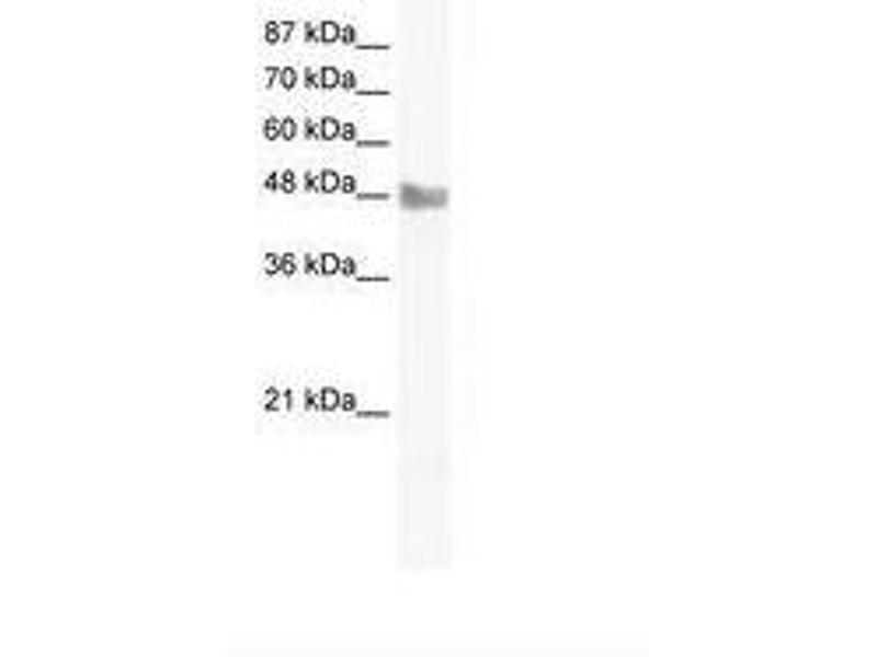 Synthetic peptide located between aa396-445 of human MAP3K8 (P41279, NP_005195). Percent identity by BLAST analysis: Human, Gorilla, Gibbon, Galago, Marmoset, Rat, Dog, Bovine, Bat, Hamster, Elephant, Panda, Horse, Platypus (100%), Mouse, Guinea pig, Xenopus (92%), Lizard (91%), Opossum, Turkey, Chicken (84%).
