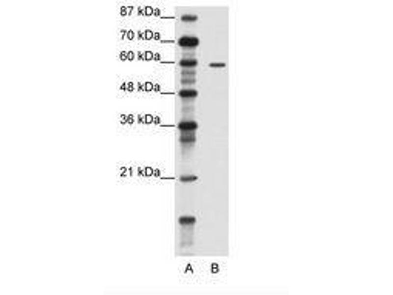 Synthetic peptide from N-Terminus of human TRIM62 (Q9BVG3, NP_060677). Percent identity by BLAST analysis: Human, Chimpanzee, Gorilla, Gibbon, Monkey, Galago, Marmoset, Mouse, Rat, Panda, Dog, Bovine, Bat, Horse, Pig, Opossum (100%), Turkey (92%), Zebra finch (85%).