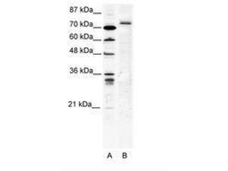 Synthetic peptide from C-Terminus of human TRIM9 (Q9C026-5, NP_443210). Percent identity by BLAST analysis: Human, Chimpanzee (100%), Rabbit (92%).