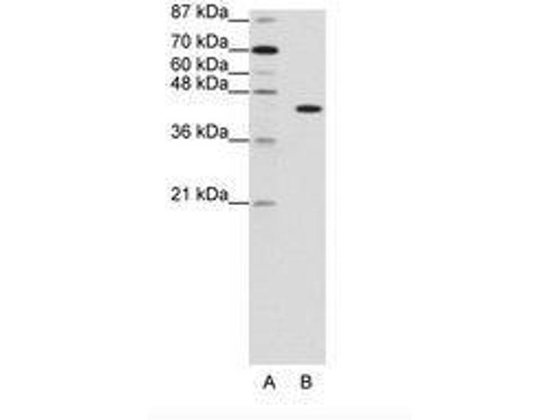 Synthetic peptide from N-Terminus of human PGBD1 (Q96JS3, NP_115896). Percent identity by BLAST analysis: Human, Gorilla, Orangutan, Gibbon, Monkey, Marmoset, Elephant, Panda, Dog, Bovine (100%), Galago, Rabbit, Pig (92%).