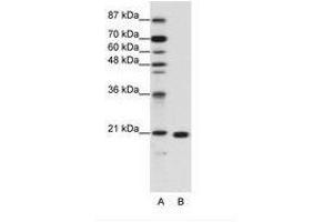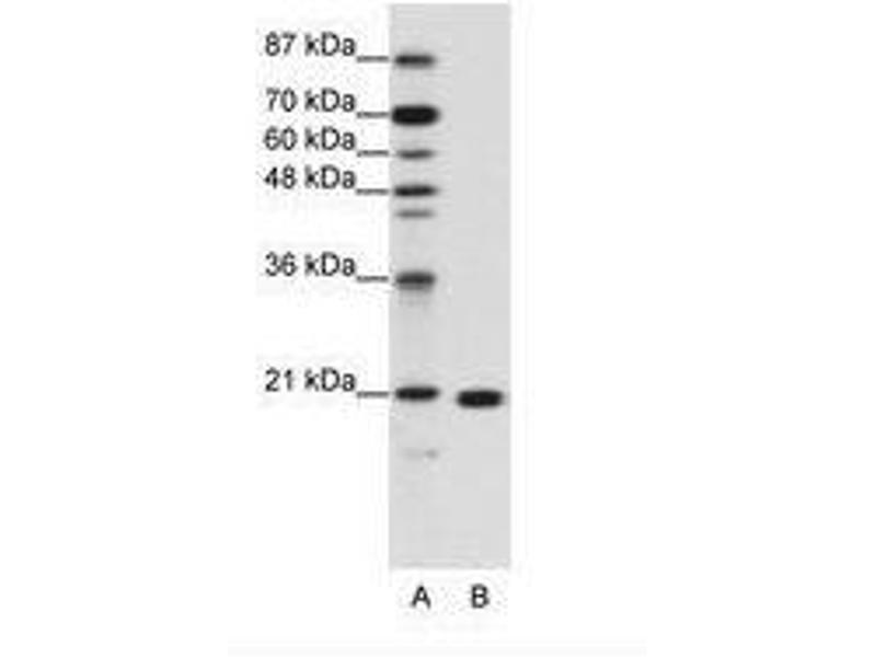 Synthetic peptide from C-Terminus of human RPL9 (P32969, NP_000652). Percent identity by BLAST analysis: Human, Gorilla, Orangutan, Gibbon, Monkey, Marmoset, Mouse, Rat, Hamster, Elephant, Panda, Dog, Bovine, Rabbit, Horse, Pig, Opossum, Guinea pig, Turkey, Zebra finch, Platypus, Lizard, Xenopus, Trout, Catfish, Salmon, Sablefish, Stickleback, Pike, Zebrafish (100%), Chicken, Sea squirt, Drosophila (92%), Beetle (85%).