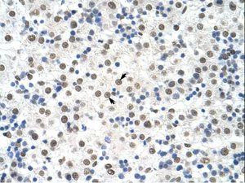Synthetic peptide from N-Terminus of human DDX19B (Q9UMR2, NP_009173). Percent identity by BLAST analysis: Human, Chimpanzee, Gorilla, Orangutan, Gibbon, Monkey, Marmoset, Hamster, Elephant, Horse, Pig (100%), Galago, Panda, Bovine, Bat, Opossum (92%), Mouse, Rat, Rabbit (91%), Dog (85%), Platypus (84%), Guinea pig (81%).