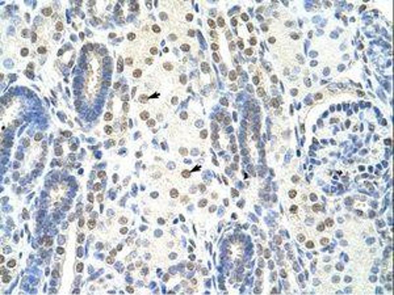 Synthetic peptide from N-Terminus of human SF1 (Q15637, NP_004621). Percent identity by BLAST analysis: Human, Chimpanzee, Gibbon, Baboon, Monkey, Galago, Marmoset, Mouse, Rat, Shrew, Elephant, Dog, Bovine, Bat, Rabbit, Horse, Pig, Guinea pig (100%), Armadillo (92%), Zebrafish (85%).
