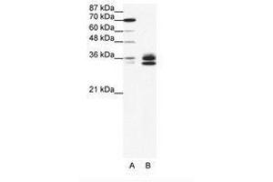Synthetic peptide located between aa21-70 of human RELA (Q04206, NP_068810). Percent identity by BLAST analysis: Human, Chimpanzee, Gorilla, Gibbon, Monkey, Galago, Marmoset, Mouse, Rat, Elephant, Panda, Dog, Bovine, Bat, Horse, Pig, Opossum, Guinea pig, Zebra finch, Chicken, Xenopus, Stickleback, Zebrafish (100%), Orangutan, Rabbit, Turkey, Platypus, Sea squirt (92%).