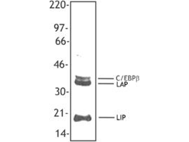 - This antibody recognizes all three isoforms C/EBP beta, LAP and LIP.