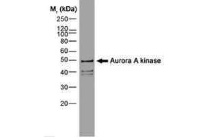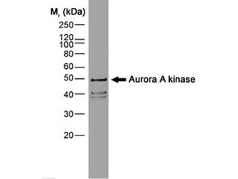 - Recognizes human Aurora-A kinase, a 46kD serine/threonine kinase involved in mitotic spindle assembly. Aurora-A is reported to be overexpressed in many epithelial cancers and is thought to play an important role in tumorigenesis. Clone Recognizes an epitope within the non-catalytic N-terminal domain of Aurora-A. Clone 35C1 does not inhibit Aurora-A kinase activity.