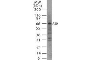 - Anti-A20 was generated against a recombinant fusion protein of full length human A20.
