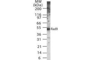 - In recombinant Rad9, a ~50 kD band is observed.