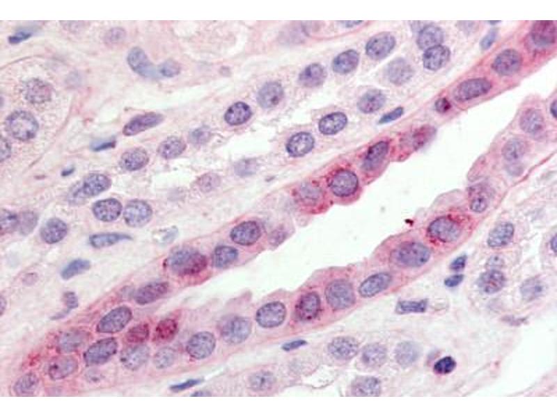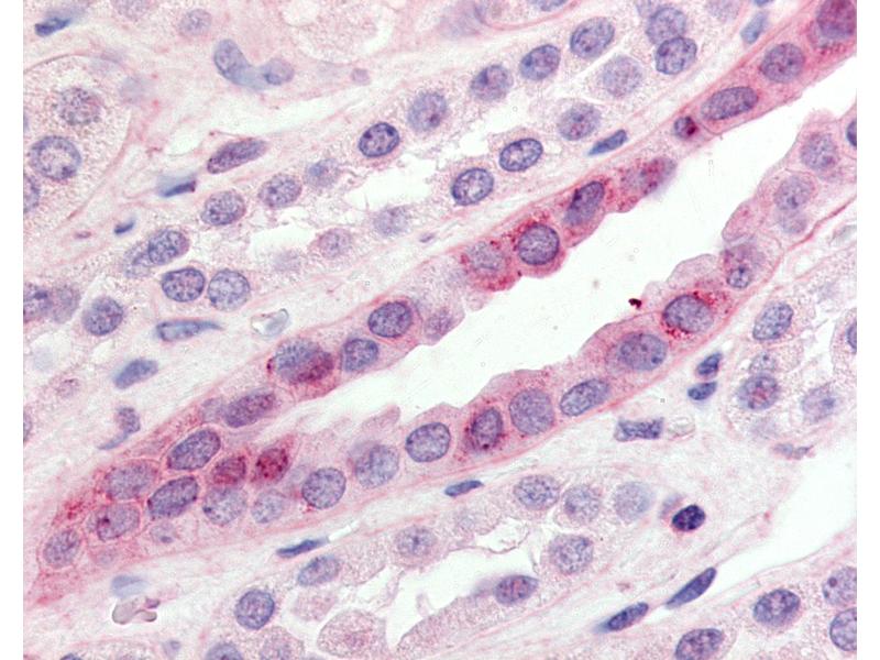 Usage: Immunohistochemistry: This antibody was validated for use in immunohistochemistry on a panel of 21 formalin-fixed, paraffin-embedded (FFPE) human tissues after heat induced antigen retrieval in pH 6.0 citrate buffer. After incubation with the primary antibody, slides were incubated with biotinylated secondary antibody, followed by alkaline phosphatase-streptavidin and chromogen. The stained slides were evaluated by a pathologist to confirm staining specificity. The optimal working concentration for this antibody was determined to be 10 μg/mL. -