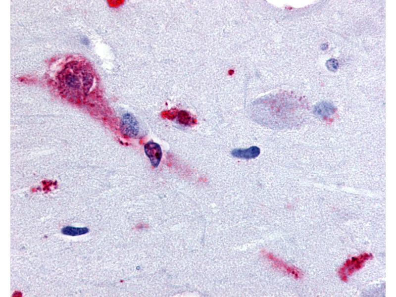 Usage: Immunohistochemistry: This antibody was validated for use in immunohistochemistry on a panel of 21 formalin-fixed, paraffin-embedded (FFPE) human tissues after heat induced antigen retrieval in pH 6.0 citrate buffer. After incubation with the primary antibody, slides were incubated with biotinylated secondary antibody, followed by alkaline phosphatase-streptavidin and chromogen. The stained slides were evaluated by a pathologist to confirm staining specificity. The optimal working concentration for this antibody was determined to be 28 μg/mL. -