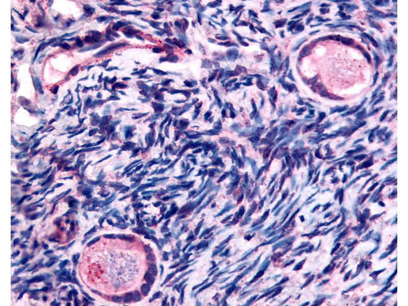 Usage: Immunohistochemistry: This antibody was validated for use in immunohistochemistry on a panel of 21 formalin-fixed, paraffin-embedded (FFPE) human tissues after heat induced antigen retrieval in pH 6.0 citrate buffer. After incubation with the primary antibody, slides were incubated with biotinylated secondary antibody, followed by alkaline phosphatase-streptavidin and chromogen. The stained slides were evaluated by a pathologist to confirm staining specificity. The optimal working concentration for this antibody was determined to be 10 μg/mL. -