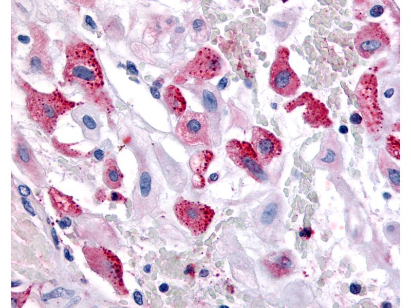 Usage: Immunohistochemistry: This antibody was validated for use in immunohistochemistry on a panel of 21 formalin-fixed, paraffin-embedded (FFPE) human tissues after heat induced antigen retrieval in pH 6.0 citrate buffer. After incubation with the primary antibody, slides were incubated with biotinylated secondary antibody, followed by alkaline phosphatase-streptavidin and chromogen. The stained slides were evaluated by a pathologist to confirm staining specificity. The optimal working concentration for this antibody was determined to be 10 μg/mL. -