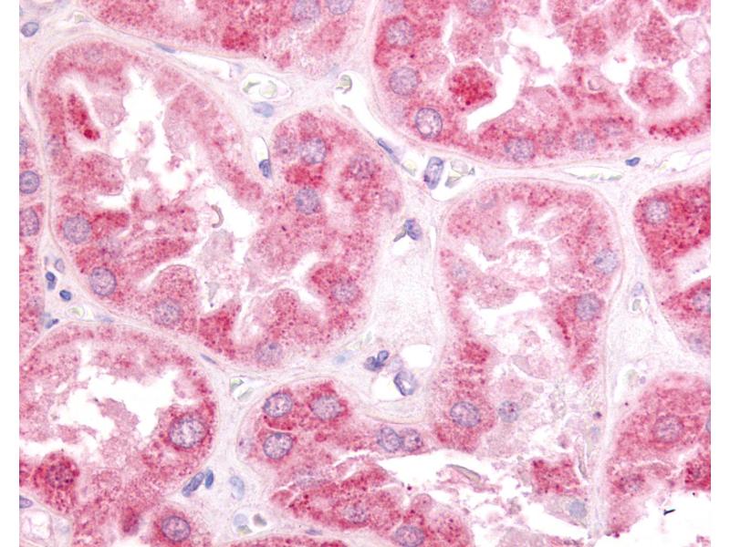 Usage: Immunohistochemistry: This antibody was validated for use in immunohistochemistry on a panel of 21 formalin-fixed, paraffin-embedded (FFPE) human tissues after heat induced antigen retrieval in pH 6.0 citrate buffer. After incubation with the primary antibody, slides were incubated with biotinylated secondary antibody, followed by alkaline phosphatase-streptavidin and chromogen. The stained slides were evaluated by a pathologist to confirm staining specificity. The optimal working concentration for this antibody was determined to be 10 μg/mL. -