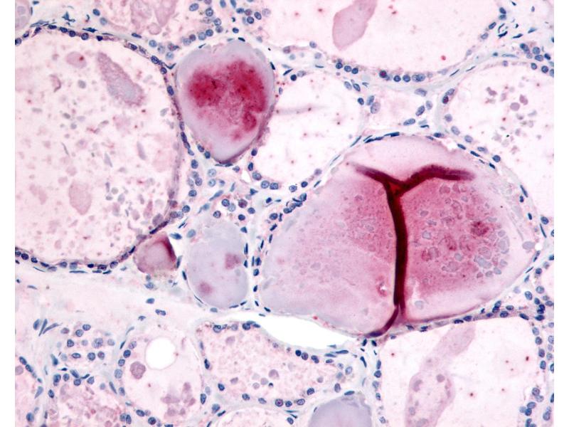 Usage: Immunohistochemistry: This antibody was validated for use in immunohistochemistry on a panel of 21 formalin-fixed, paraffin-embedded (FFPE) human tissues after heat induced antigen retrieval in pH 6.0 citrate buffer. After incubation with the primary antibody, slides were incubated with biotinylated secondary antibody, followed by alkaline phosphatase-streptavidin and chromogen. The stained slides were evaluated by a pathologist to confirm staining specificity. The optimal working concentration for this antibody was determined to be 10 μg/mL. -
