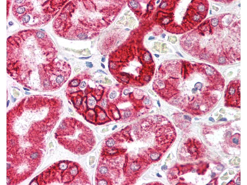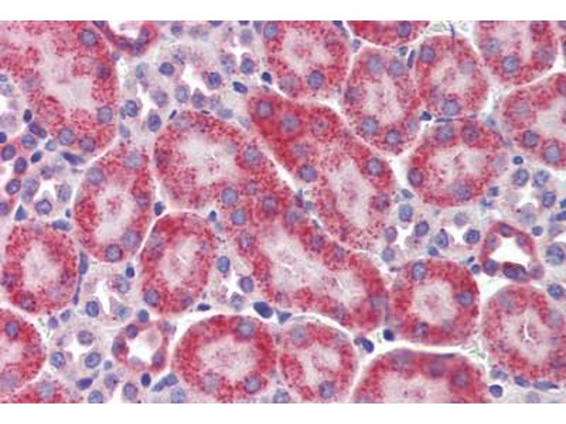 Usage: Immunohistochemistry: This antibody was validated for use in immunohistochemistry on a panel of 21 formalin-fixed, paraffin-embedded (FFPE) human tissues and a panel of mouse tissues after heat induced antigen retrieval in pH 6.0 citrate buffer. After incubation with the primary antibody, slides were incubated with biotinylated secondary antibody, followed by alkaline phosphatase-streptavidin and chromogen. The stained slides were evaluated by a pathologist to confirm staining specificity. The optimal working concentration for this antibody was determined to be 5 μg/mL.