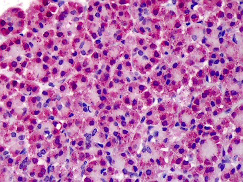 Usage: Immunohistochemistry: This antibody was validated for use in immunohistochemistry on a panel of 21 formalin-fixed, paraffin-embedded (FFPE) human tissues after heat induced antigen retrieval in pH 6.0 citrate buffer. After incubation with the primary antibody, slides were incubated with biotinylated secondary antibody, followed by alkaline phosphatase-streptavidin and chromogen. The stained slides were evaluated by a pathologist to confirm staining specificity. The optimal working concentration for this antibody was determined to be 5 μg/mL. -