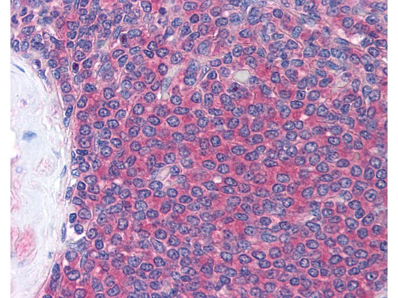 Usage: Immunohistochemistry: This antibody was validated for use in immunohistochemistry on a panel of 21 formalin-fixed, paraffin-embedded (FFPE) human tissues after heat induced antigen retrieval in pH 6.0 citrate buffer. After incubation with the primary antibody, slides were incubated with biotinylated secondary antibody, followed by alkaline phosphatase-streptavidin and chromogen. The stained slides were evaluated by a pathologist to confirm staining specificity. The optimal working concentration for this antibody was determined to be 15 μg/mL. -
