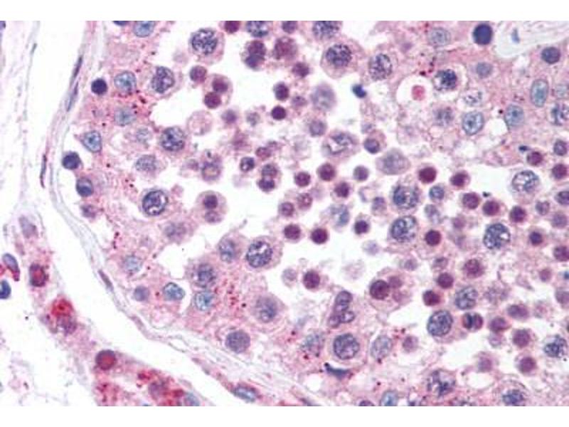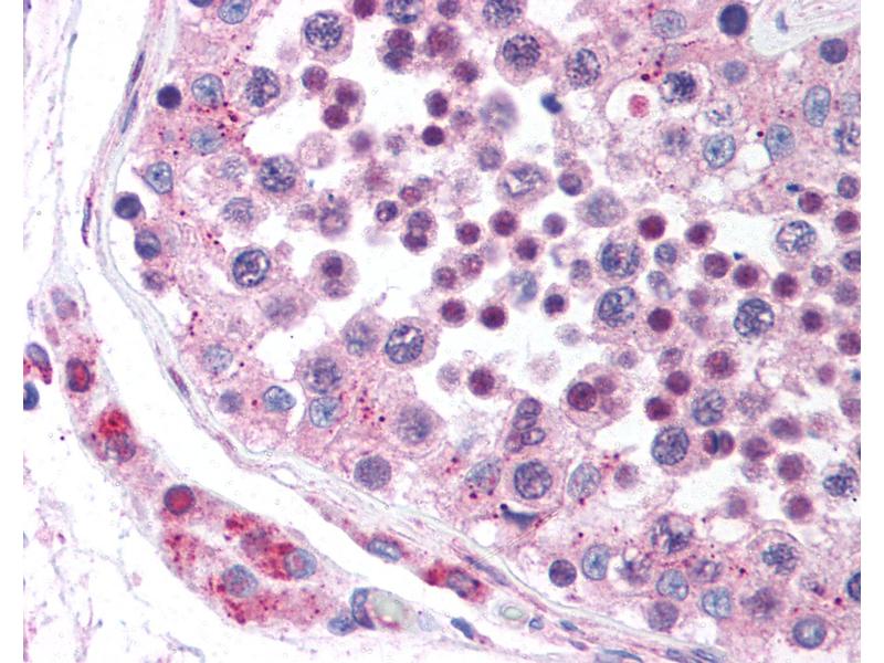 Usage: Immunohistochemistry: This antibody was validated for use in immunohistochemistry on a panel of 21 formalin-fixed, paraffin-embedded (FFPE) human tissues after heat induced antigen retrieval in pH 6.0 citrate buffer. After incubation with the primary antibody, slides were incubated with biotinylated secondary antibody, followed by alkaline phosphatase-streptavidin and chromogen. The stained slides were evaluated by a pathologist to confirm staining specificity. The optimal working concentration for this antibody was determined to be 2.5 μg/mL. -
