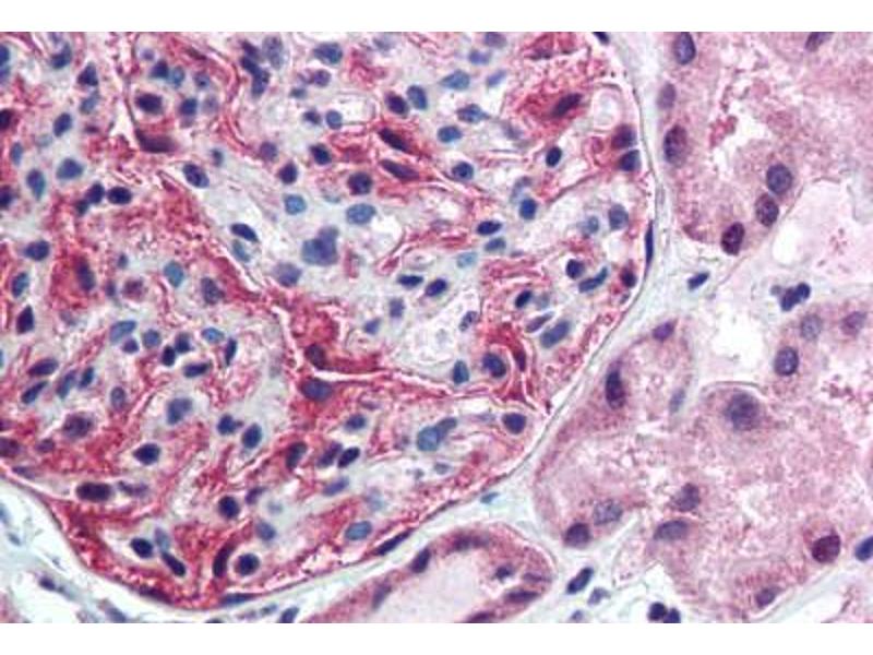 Usage: Immunohistochemistry: This antibody was validated for use in immunohistochemistry on a panel of 21 formalin-fixed, paraffin-embedded (FFPE) human tissues after heat induced antigen retrieval in pH 6.0 citrate buffer. After incubation with the primary antibody, slides were incubated with biotinylated secondary antibody, followed by alkaline phosphatase-streptavidin and chromogen. The stained slides were evaluated by a pathologist to confirm staining specificity. The optimal working concentration for this antibody was determined to be 2.5 μg/mL. -