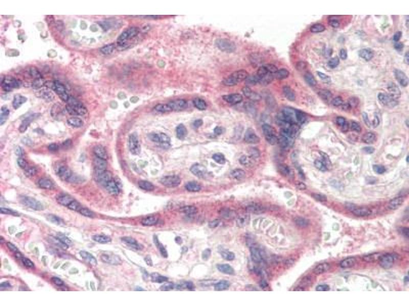 Usage: Immunohistochemistry: This antibody was validated for use in immunohistochemistry on a panel of 21 formalin-fixed, paraffin-embedded (FFPE) human tissues after heat induced antigen retrieval in pH 6.0 citrate buffer. After incubation with the primary antibody, slides were incubated with biotinylated secondary antibody, followed by alkaline phosphatase-streptavidin and chromogen. The stained slides were evaluated by a pathologist to confirm staining specificity. The optimal working concentration for this antibody was determined to be 2.5 μg/mL. -