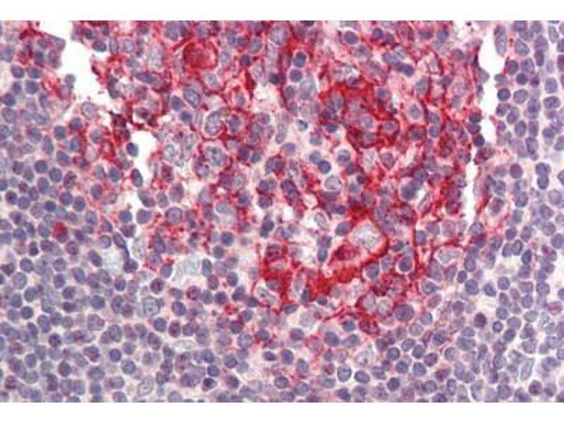 Usage: Immunohistochemistry: This antibody was validated for use in immunohistochemistry on a panel of 21 formalin-fixed, paraffin-embedded (FFPE) human tissues after heat induced antigen retrieval in pH 6.0 citrate buffer. After incubation with the primary antibody, slides were incubated with biotinylated secondary antibody, followed by alkaline phosphatase-streptavidin and chromogen. The stained slides were evaluated by a pathologist to confirm staining specificity. The optimal working concentration for this antibody was determined to be 5 μg/mL. -