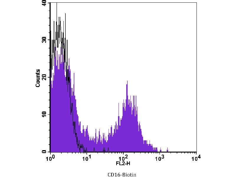 The Mouse Monoclonal anti-CD16 antibody has been validated for FACS. It is suitable to detect CD16 in samples from Human.