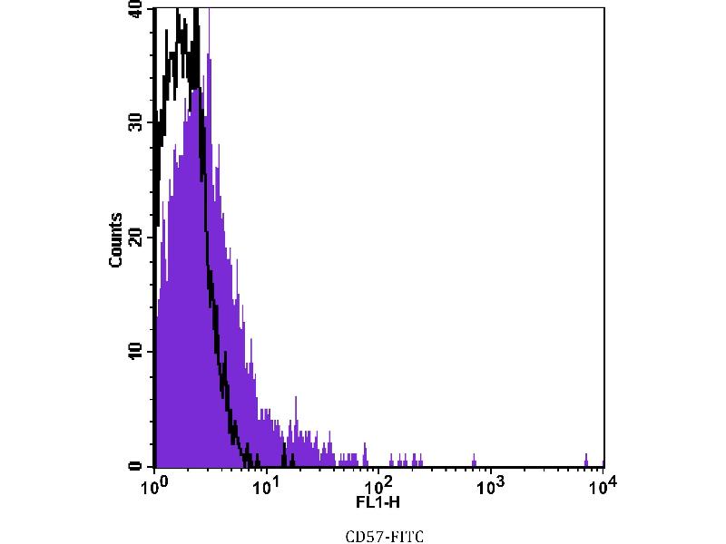 The FITC-conjugated Mouse Monoclonal anti-CD57 antibody (Clone 4AHNK-1) (ABIN2144649) specifically detects CD57 in FACS, WB, IHC (p) and Func.