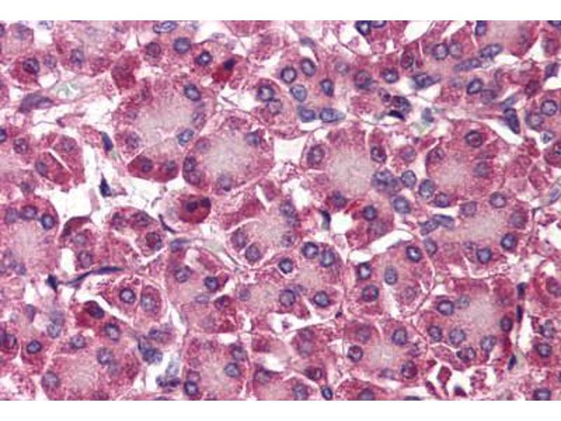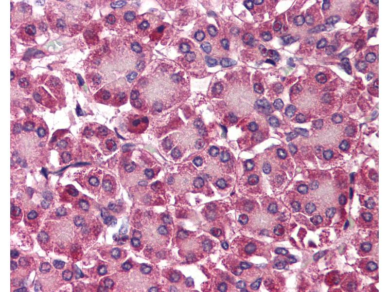 Usage: Immunohistochemistry: This antibody was validated for use in immunohistochemistry on a panel of 21 formalin-fixed, paraffin-embedded (FFPE) human tissues after heat induced antigen retrieval in pH 6.0 citrate buffer. After incubation with the primary antibody, slides were incubated with biotinylated secondary antibody, followed by alkaline phosphatase-streptavidin and chromogen. The stained slides were evaluated by a pathologist to confirm staining specificity. The optimal working concentration for this antibody was determined to be 2.5 μg/mL. -
