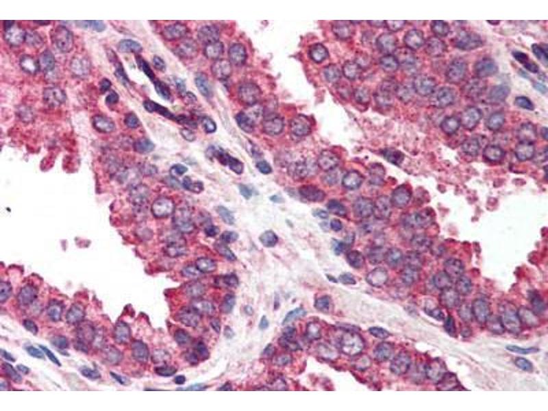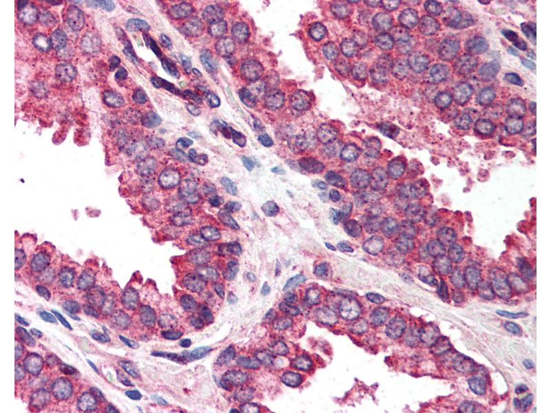 Usage: Immunohistochemistry: This antibody was validated for use in immunohistochemistry on a panel of 21 formalin-fixed, paraffin-embedded (FFPE) human tissues after heat induced antigen retrieval in pH 6.0 citrate buffer. After incubation with the primary antibody, slides were incubated with biotinylated secondary antibody, followed by alkaline phosphatase-streptavidin and chromogen. The stained slides were evaluated by a pathologist to confirm staining specificity. The optimal working concentration for this antibody was determined to be 2.5 μg/mL. -