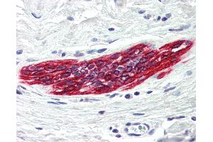 Usage: Immunohistochemistry: This antibody was validated for use in immunohistochemistry on a panel of 21 formalin-fixed, paraffin-embedded (FFPE) human tissues after heat induced antigen retrieval in pH 6.0 citrate buffer. After incubation with the primary antibody, slides were incubated with biotinylated secondary antibody, followed by alkaline phosphatase-streptavidin and chromogen. The stained slides were evaluated by a pathologist to confirm staining specificity. The optimal working concentration for this antibody was determined to be 5 μg/mL. -