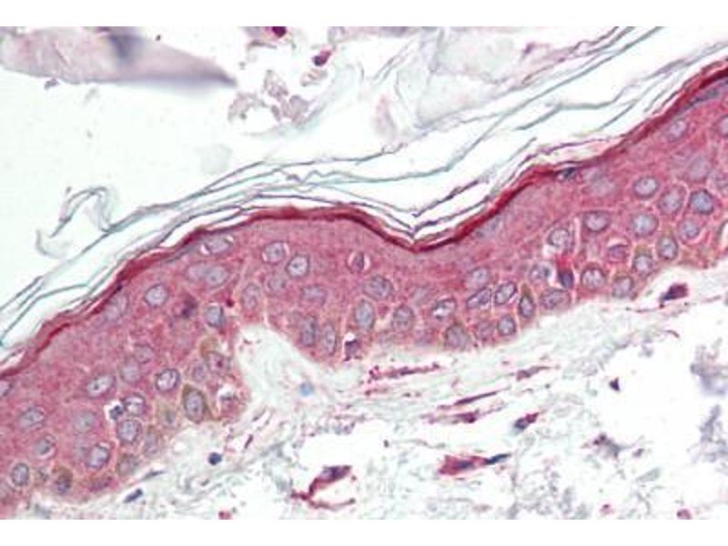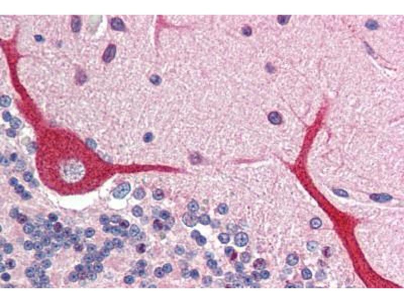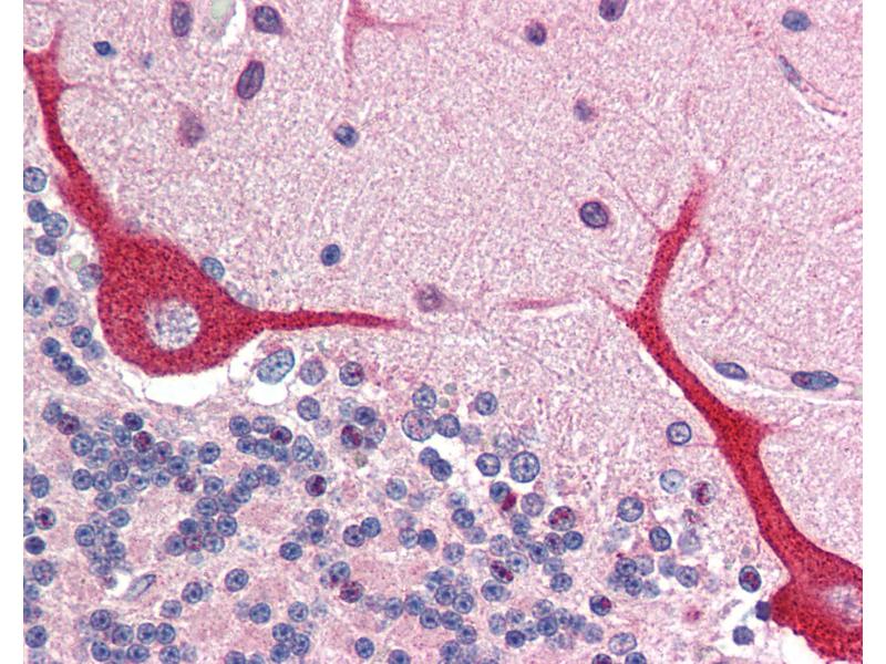 Usage: Immunohistochemistry: This antibody was validated for use in immunohistochemistry on a panel of 21 formalin-fixed, paraffin-embedded (FFPE) human tissues after heat induced antigen retrieval in pH 6.0 citrate buffer. After incubation with the primary antibody, slides were incubated with biotinylated secondary antibody, followed by alkaline phosphatase-streptavidin and chromogen. The stained slides were evaluated by a pathologist to confirm staining specificity. The optimal working concentration for this antibody was determined to be 2.5 μg/mL. -