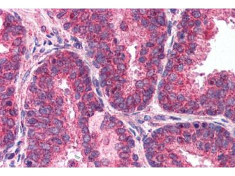 Usage: Immunohistochemistry: This antibody was validated for use in immunohistochemistry on a panel of 21 formalin-fixed, paraffin-embedded (FFPE) human tissues after heat induced antigen retrieval in pH 6.0 citrate buffer. After incubation with the primary antibody, slides were incubated with biotinylated secondary antibody, followed by alkaline phosphatase-streptavidin and chromogen. The stained slides were evaluated by a pathologist to confirm staining specificity. The optimal working concentration for this antibody was determined to be 2.5 μg/mL. -