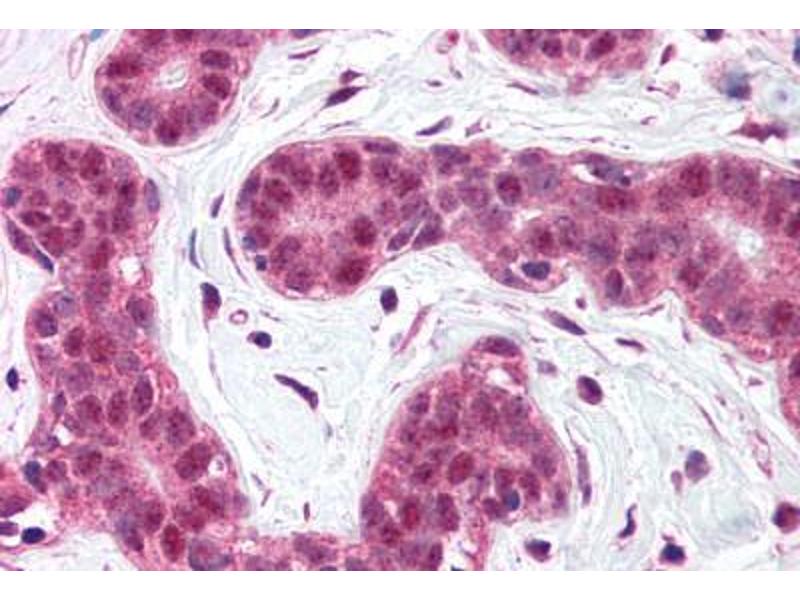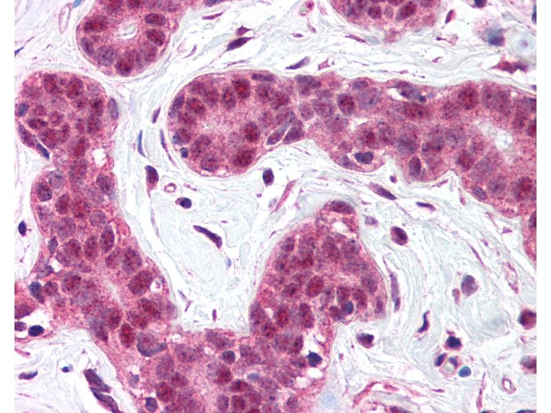 Usage: Immunohistochemistry: This antibody was validated for use in immunohistochemistry on a panel of 21 formalin-fixed, paraffin-embedded (FFPE) human tissues after heat induced antigen retrieval in pH 6.0 citrate buffer. After incubation with the primary antibody, slides were incubated with biotinylated secondary antibody, followed by alkaline phosphatase-streptavidin and chromogen. The stained slides were evaluated by a pathologist to confirm staining specificity. The optimal working concentration for this antibody was determined to be 5 μg/mL. -