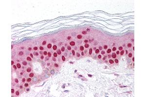 Usage: Immunohistochemistry: This antibody was validated for use in immunohistochemistry on a panel of 21 formalin-fixed, paraffin-embedded (FFPE) human tissues after heat induced antigen retrieval in pH 6.0 citrate buffer. After incubation with the primary antibody, slides were incubated with biotinylated secondary antibody, followed by alkaline phosphatase-streptavidin and chromogen. The stained slides were evaluated by a pathologist to confirm staining specificity. The optimal working concentration for this antibody was determined to be 10 μg/mL. -