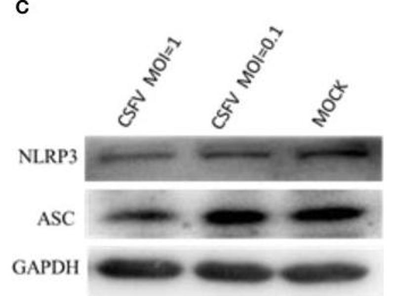 Background: Functions as key mediator in apoptosis and inflammation. Promotes caspase-mediated apoptosis involving predominantly caspase-8 and also caspase-9 in a probable cell type-specific manner. Involved in activation of the mitochondrial apoptotic pathway, promotes caspase-8-dependent proteolytic maturation of BID independently of FADD in certain cell types and also mediates mitochondrial translocation of BAX and activates BAX-dependent apoptosis coupled to activation of caspase-9, -2 and -3. Involved in macrophage pyroptosis, a caspase-1-dependent inflammatory form of cell death and is the major constituent of the ASC pyroptosome which forms upon potassium depletion and rapidly recruits and activates caspase-1. In innate immune response believed to act as an integral adapter in the assembly of the inflammasome which activates caspase-1 leading to processing and secretion of proinflammatory cytokines. The function as activating adapter in different types of inflammasomes is mediated by the DAPIN and CARD domains and their homotypic interactions. Required for recruitment of caspase-1 to inflammasomes containing certain pattern recognition receptors, such as NLRP2, NLRP3, AIM2 and probably IFI16. In the NLRP1 and NLRC4 inflammasomes seems not be required but facilitates the processing of procaspase-1. In cooperation with NOD2 involved in an inflammasome activated by bacterial muramyl dipeptide leading to caspase-1 activation. May be involved in DDX58-triggered proinflammatory responses and inflammasome activation. Isoform 2 may have a regulating effect on the function as inflammasome adapter. Isoform 3 seems to inhibit inflammasome-mediated maturation of interleukin-1 beta. In collaboration with AIM2 which detects cytosolic double-stranded DNA may also be involved in a caspase-1-independent cell death that involves caspase-8.