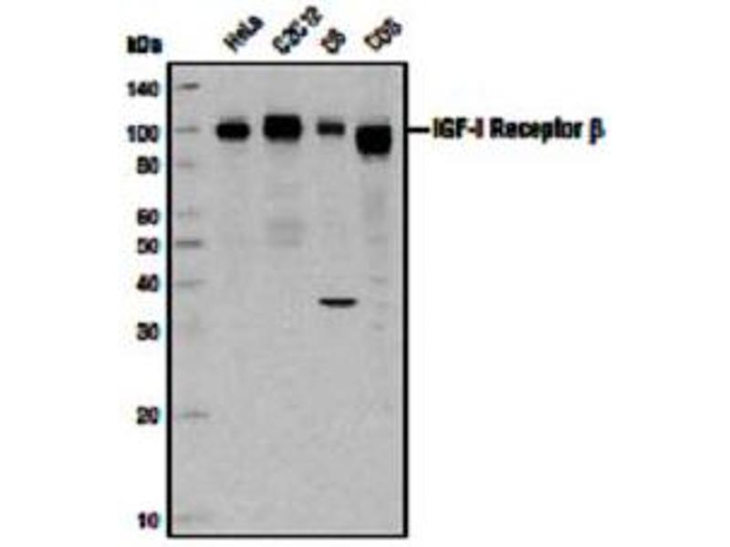 - Recognizes endogenous levels of human IGF-IR beta at 95kD. It does not cross-react with insulin receptor.
