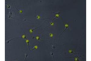 Flow Cytometry. Western Blotting. Immunocytochemistry: 10 μg/mL, Staining technique: Membrane permeabilization(acetone) is essential. Application note: The antibody Hs-14 is designed for quantitativeimmunofluorescence analysis of pathological sperms (excellent tool for laboratories ofassisted reproduction when optimal method of fertilization is sought). Other applications not tested. Optimal dilutions are dependent on conditions and should be determined by the user.