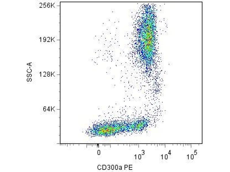 This antibody reacts with CD300a, a 60 kDa leukocyte transmembrane glycoprotein expressed on human granulocytes, monocytes, neutrophils, NK cells, mast cells and dendritic cells, 25 % of circulating T cells and 15 % of circulating B cells.