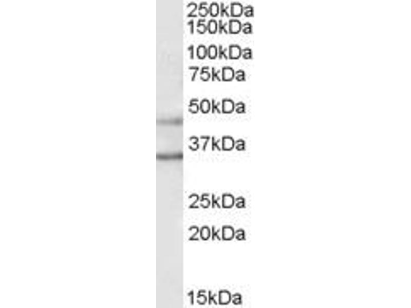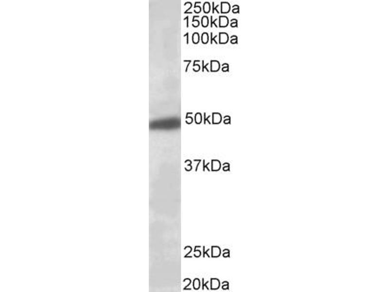 Western Blot: Approx 48 kDa band observed in Human Brain (Hippocampus and Substantia Nigra) lysates (calculated MW of 48.5 kDa according to NP_002231.1). Recommended concentration: 2-6 μg/mL. Primary incubation was 1 hour.