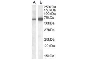 Western Blot: Approx 70 kDa band observed in Human Brain (Cerebellum) lysates (calculated MW of 42.8 kDa according to NP_660339.1). The observed molecular weight corresponds to findings with EB08194, a product of different design reacting to a different p