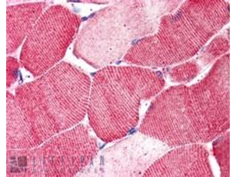 Immunohistochemistry: In paraffin embedded Human Skeletal Muscle shows striated pattern staining of majority of muscular fibres. Recommended concentration, 5-10 μg/mL.