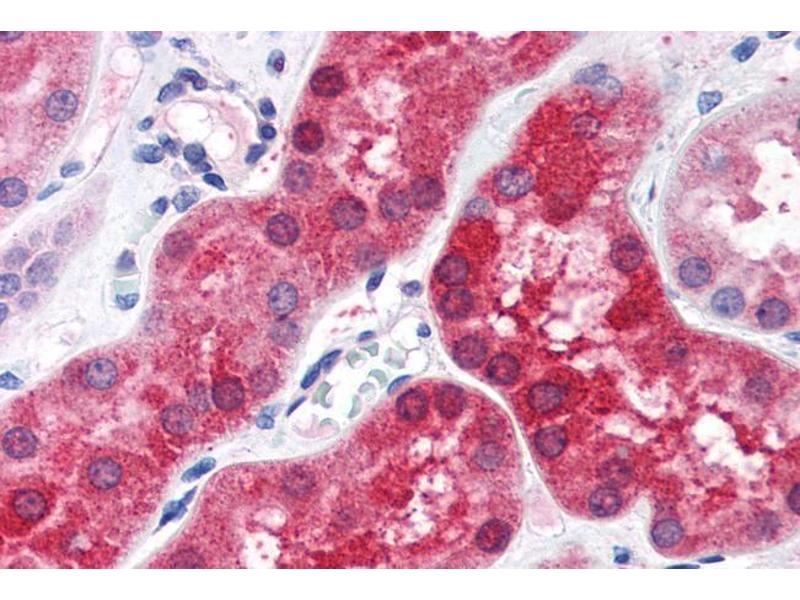 Immunohistochemistry: Paraffin embedded Human Kidney. Recommended concentration: 3.75 μg/mL.