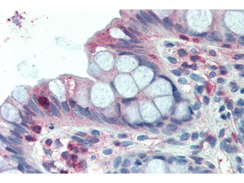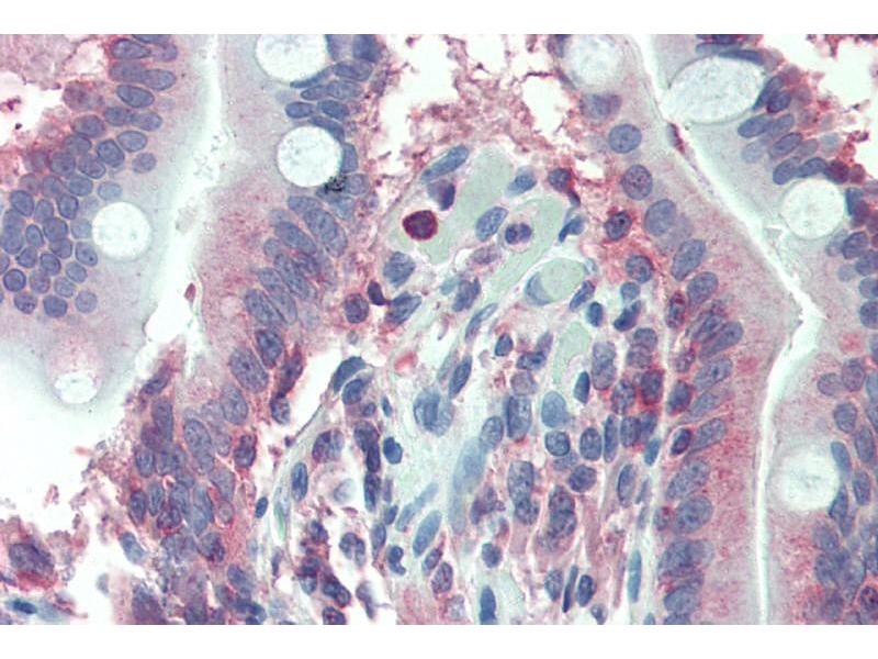 Immunohistochemistry: Paraffin embedded Human Colon and Small Intestine. Recommended concentration: 2.5 μg/mL.