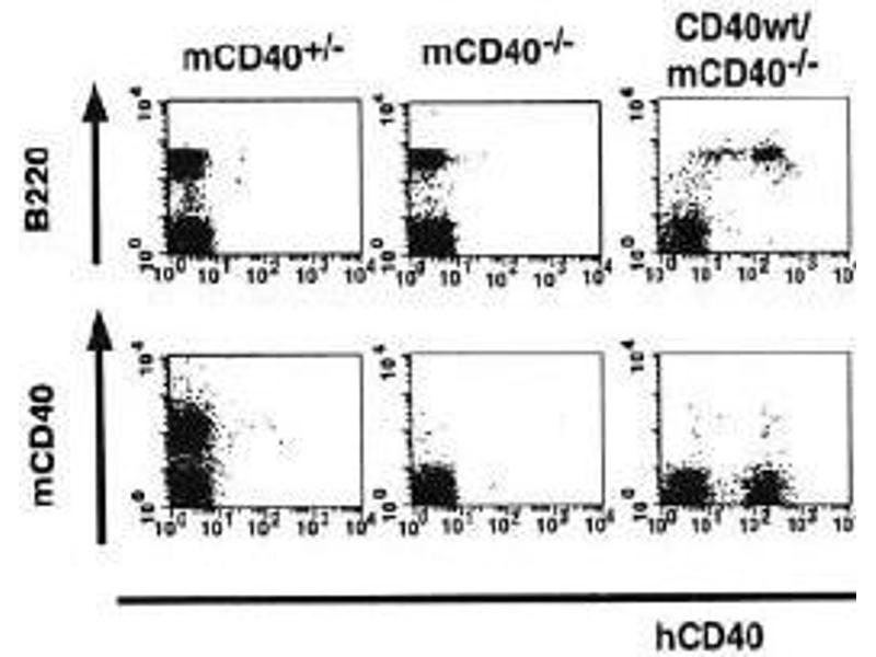 - CD40 is a 45-50- kDa glycoprotein belonging to the tumor necrosis factor (TNF) receptor superfamily. CD40 is specifically expressed on the surface of B cells and specialized antigen-presenting cells such as dendritic cells and macrophages. CD40 interacts with the CD40 ligand (CD154) which is found primarily on T cells, playing a role in both humoral and cell-mediated immune responses. Activation of CD40 on B cells by CD40 ligand causes B cell proliferation, differentiation, immunoglobulin isotype switching, germinal center formation, and stimulation of the humoral memory response. This antibody reacts with a 45-48 kDa type I integral membrane glycoprotein present on peripheral blood and tonsillar B cells, but not expressed on terminally differentiated B cells. The antibody against human CD40 was produced from hybridoma (5C3) cultured in serum-free medium and purified under mild conditions by proprietary chromatography processes.