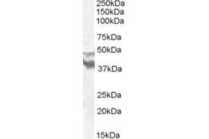 - ELISA: Antibody detection limit dilution 1:32,000. Western Blot: Approximately 48+40 kDa bands observed in human brain (cerebral cortex and frontal cortex) lysates (calculated MW of 48.5 kDa according to NP_570722.2 and of 44.0 kDa according to NP_001028731