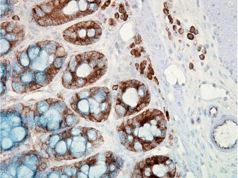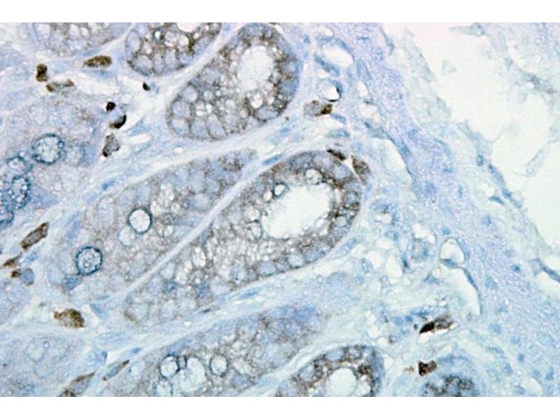 1 μg/ml of ABIN2481354 was sufficient for detection of HSP90beta in 20 μg of heat shocked HeLa cell lysate by colorimetric immunoblot analysis using Goat anti-mouse IgG:HRP as the secondary antibody.